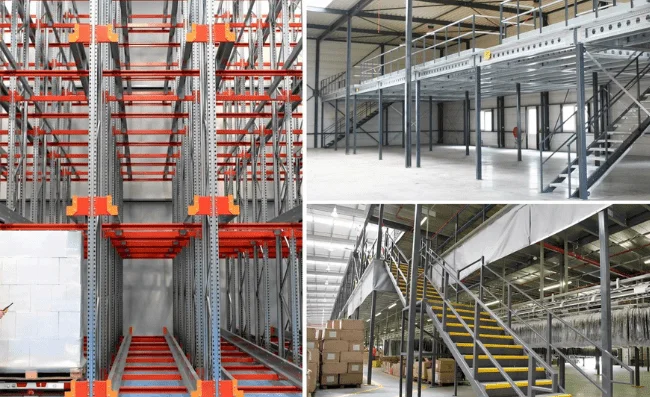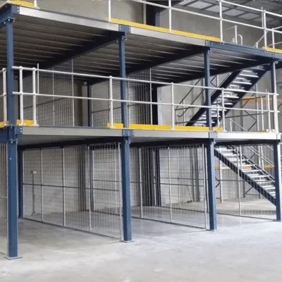 Multi-level mezzanine floors designed to maximize workspace while ensuring strength, safety, and operational efficiency in warehouses.