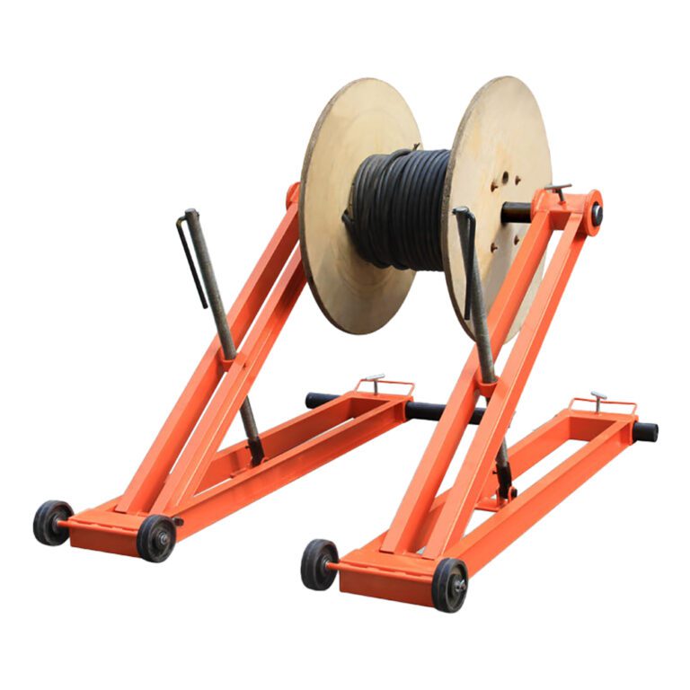 Heavy-duty cable reel stands and winders designed for safe handling, storage, and organization in demanding warehouse environments.