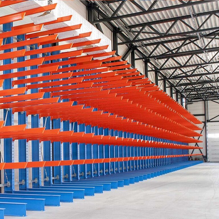 Cantilever racking systems designed for safe, efficient storage of long, heavy, or irregularly shaped industrial materials.