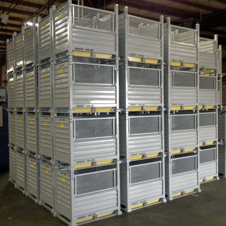Versatile Nally pallet bins available in solid, folding, plain, and vented designs for safe, reliable storage.