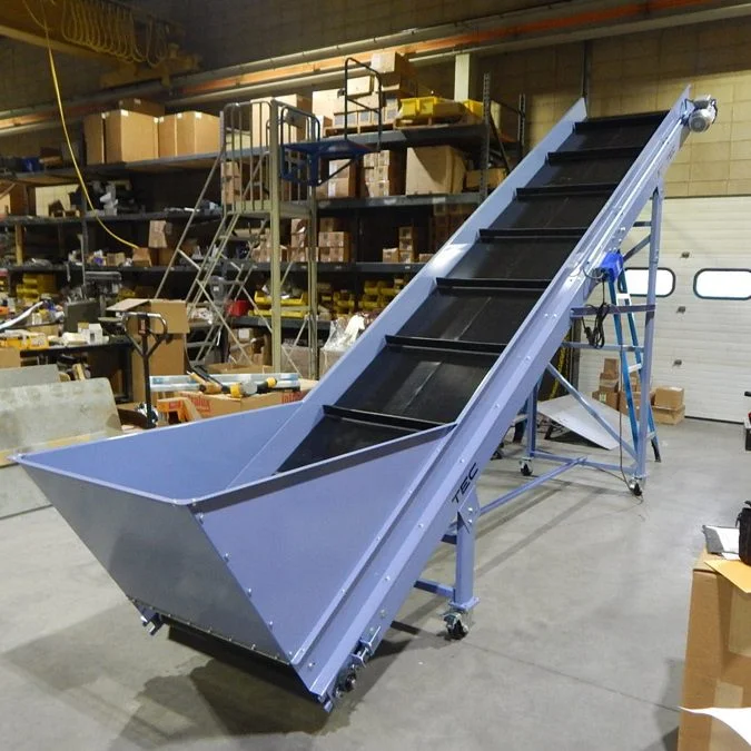 Incline product conveyor systems designed for smooth, reliable goods movement, improving productivity in warehouses and industrial facilities.